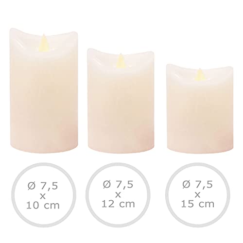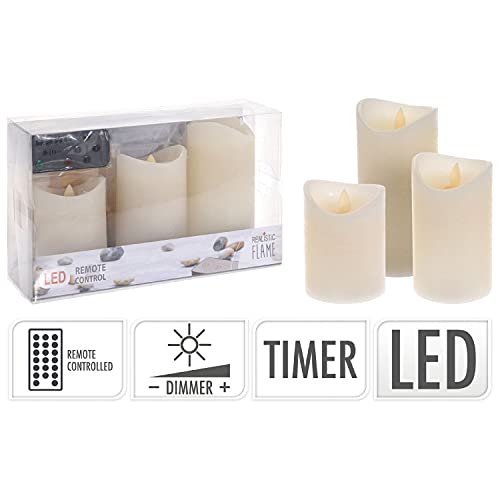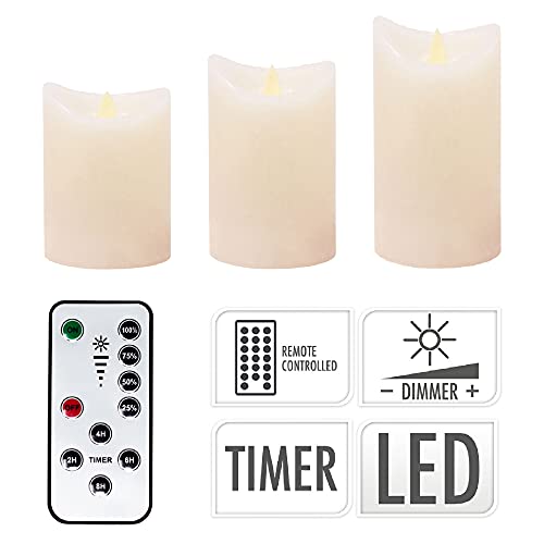 ToCi Set di 3 candele a LED | candele in vera cera senza fiamma con telecomando, timer | candele elettriche con dimmer (avorio)