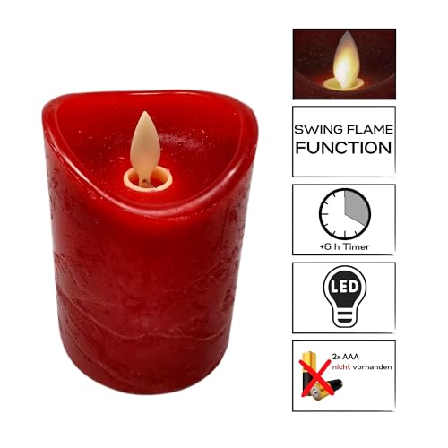 ToCi, set di 4 candele a LED, in cera pura, senza fiamma, con luce tremolante e timer Rot (Ø7,5x10cm) Flamme