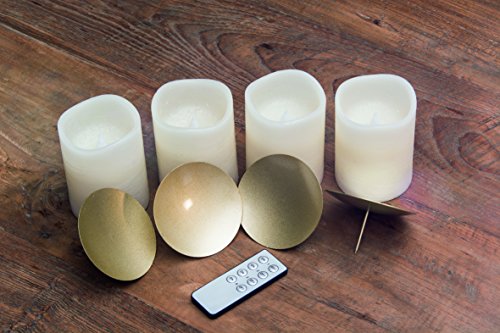 My Home Set di 4 Candele a LED in Vera Cera, con Telecomando e Supporti Dorati.