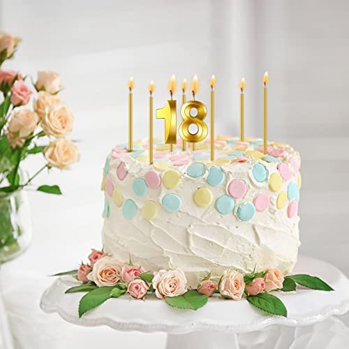 Candele Torta del 18° Compleanno Candele Numeriche Candele di Compleanno Decoro Topper per Torta Candele Numero e 12 Pezzi 5,1 Pollici Candele per Cupcake Lunghe e Sottili Metalliche