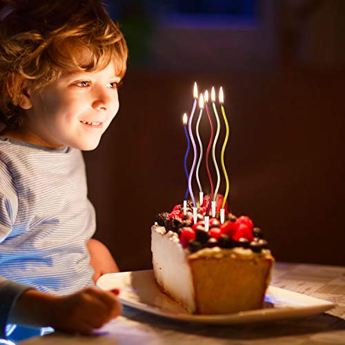 【Candeline compleanno particolari】 Ogni candeline compleanno ha una forma d'onda a spirale e colorata con rivestimento metallico. Un tocco di eleganza e delicatezza, comodo da usare con il supporto in plastica, non spezzerebbe la bella superficie della tua torta.Una varietà di colori aggiungerà più felice e atmosfera calda, si prega di controllare l'immagine per i dettagli di colore.