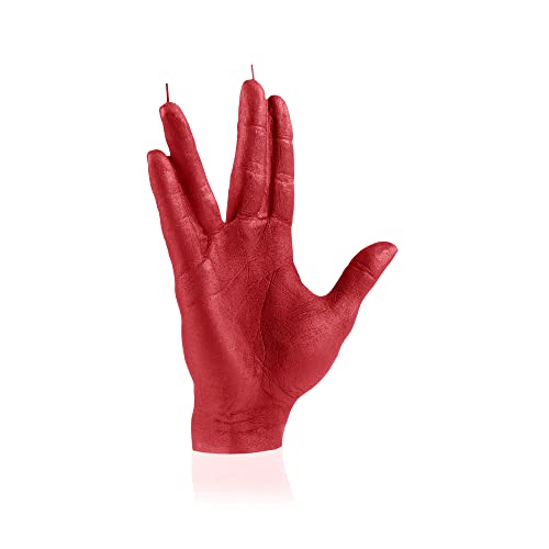 Candellana Candela Spock | Altezza: 24 cm | Rosso | Tempo di combustione 30 h | Dimensioni della candela 1:1 equivale a una mano reale | Realizzato a mano in UE