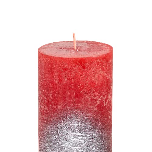 Contenuto della confezione: set di 4 candele a colonna rustiche - rosso/argento - ideale anche come regalo - sia per Natale, Pasqua o compleanno