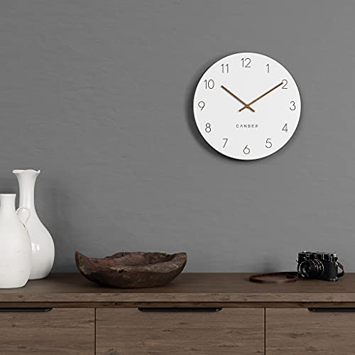 Cander Berlin MNU 2630 W - Orologio da parete in MDF silenzioso, senza ticchettio, 30 cm, analogico, per soggiorno, moderno, vintage, colore: Bianco