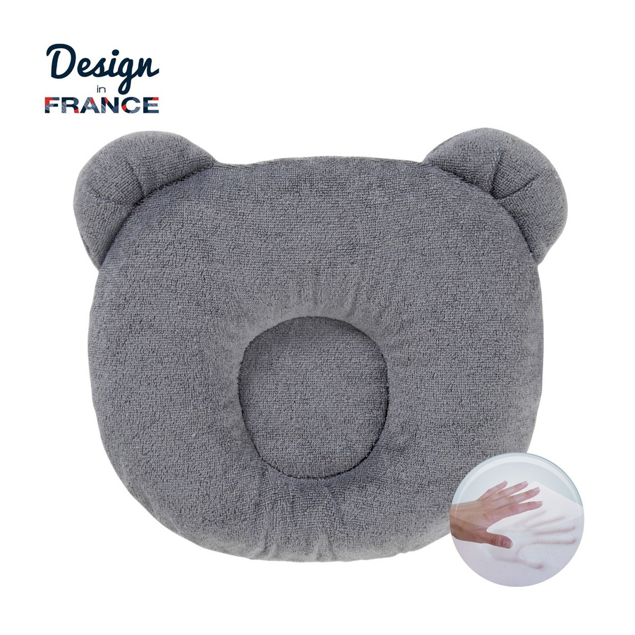 Il cuscino P'tit Panda è riempito con un composto di schiuma modellata ed è progettato per sollevare leggermente la testa del bambino in modo che la testa mantenga una bella forma rotonda. Dettagli del prodotto: Materiale: 100 % cotone Imbottitura: 100% poliuretano Dimensioni: 21 x 19 cm Età: da 0 - 6 mesi