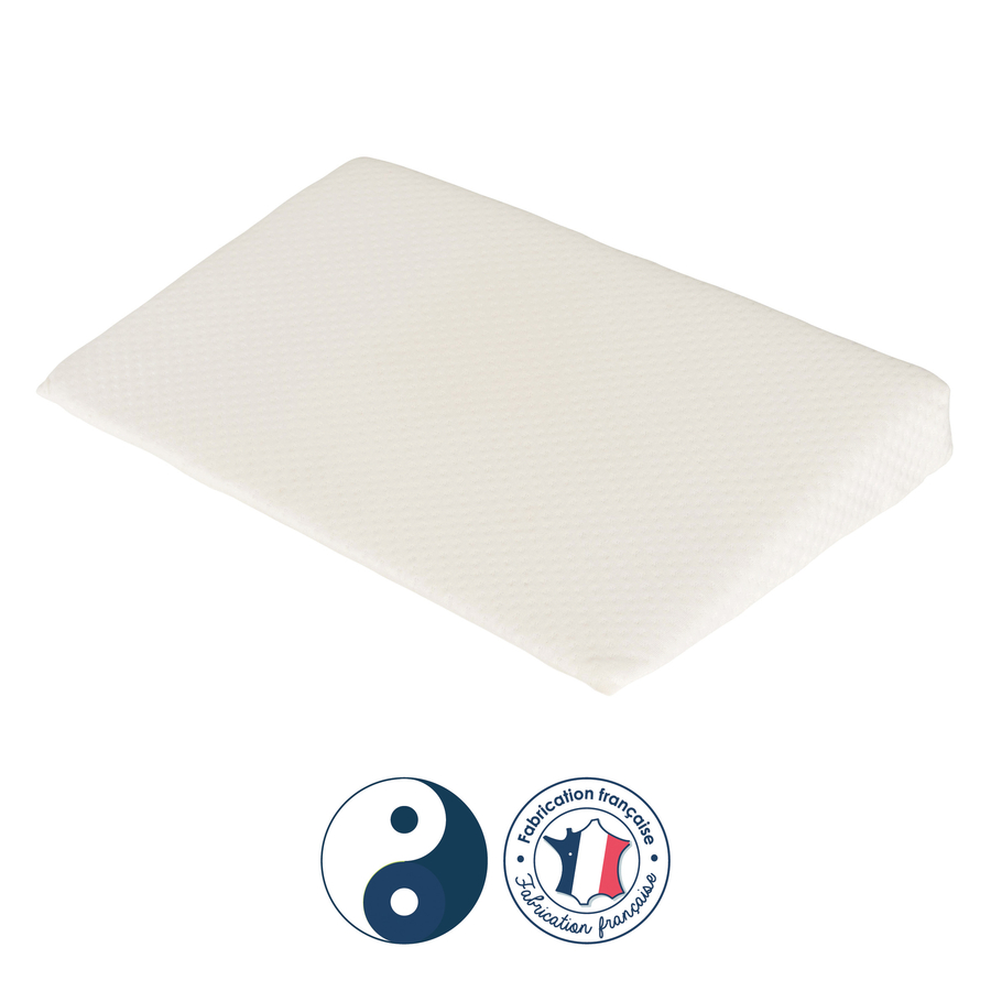 Dettagli del prodotto: Cuneo disteso con 15° di inclinazione Per pelli sensibili con copertura antiacaro e antibatterica Per migliorare il benessere respiratorio e digestivo del bambino Adatto per bambini da 0 a 24 mesi Prodotto in Francia Materiale e cura: Materiale tomaia: 50 % poliestere, 50 % viscosa Materiale della parte inferiore: 50 % cotone, 50 % poliestere Anima del materiale: 100 % poliestere Istruzioni per la cura: lavabile a 30°C Dimensioni e peso: Lunghezza: 55 cm Larghezza: 35 cm Altezza: 8 cm Adatto per letti di dimensioni 60 x 120 cm Peso: 0,4 kg Incluso nella consegna: 1 cuneo reclinabile