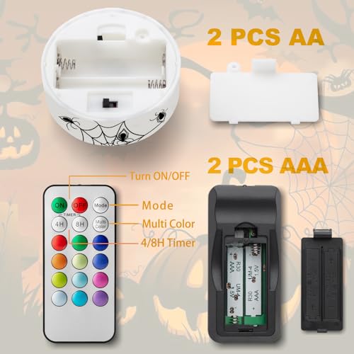 CANDLE IDEA 2 luci a LED a forma di zucca che cambiano colore, con telecomando e timer, luci colorate a batteria Jack-O-Lantern per esterni, Halloween, zucca senza fiamma, decorazioni per la casa