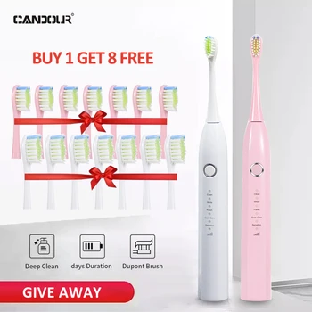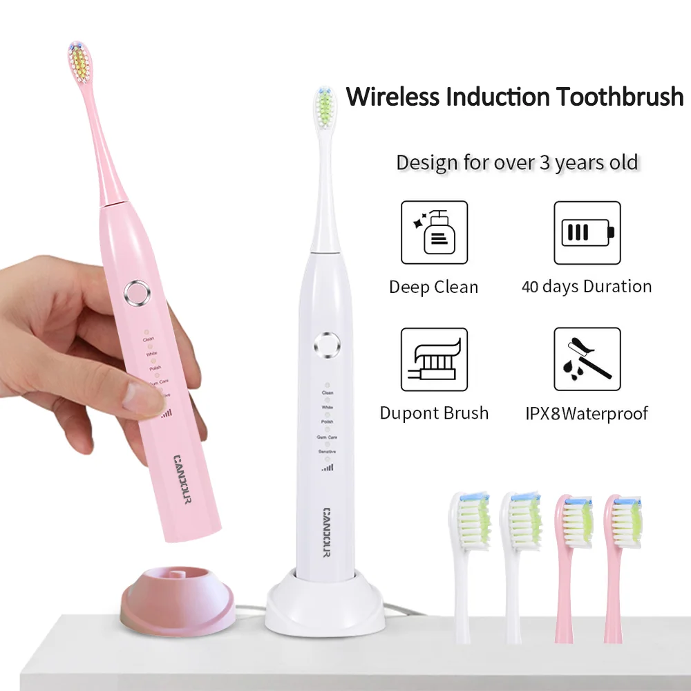 CANDOUR Sonic Electric Toothbrush Rechargeable 15 Modes IPX8 Waterproof Toothbrush Teeth Replacement Heads Set