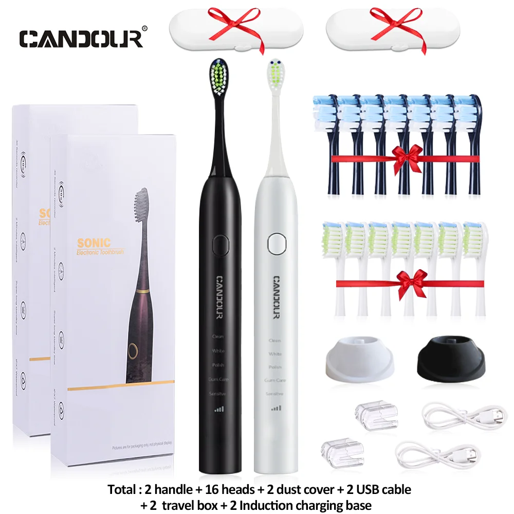 CANDOUR Sonic Electric Toothbrush Rechargeable Top Quality Smart Chip Toothbrush Head Replaceable Whitening Healthy Best Gift