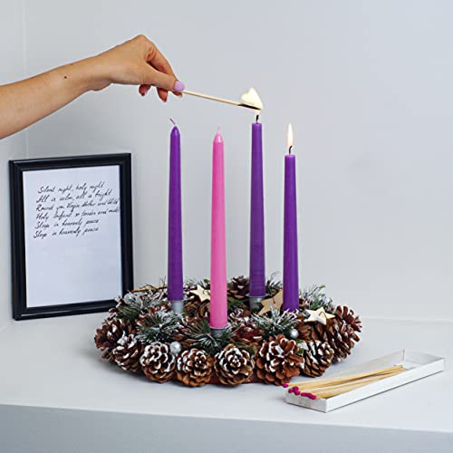 CANDWAX 30,5 cm cono candele dell'avvento 3 set - candele coniche candelabri non profumati, candele a lunga combustione, perfette come corona dell'avvento - candele viola dell'avvento