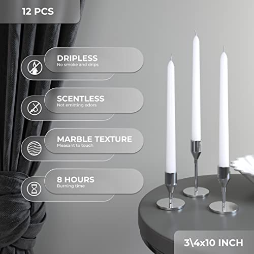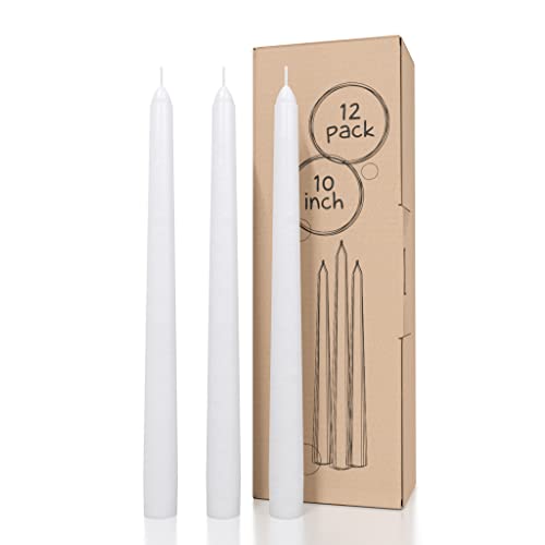 CANDWAX Candele coniche bianche 25,4 cm senza gocciolamento - Set di 12 candele affusolate ideali come candele natalizie, senza profumo e candele coniche a lunga combustione - Candelieri alti