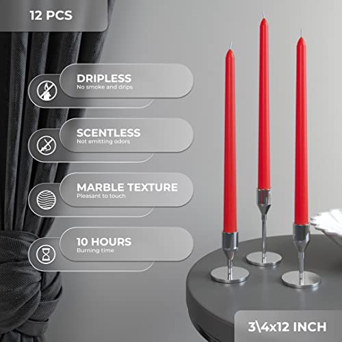 Candwax Candwax - Candele coniche da 30,5 cm, senza profumo e senza fumo, candele a combustione lenta sono perfetti come candele coniche del Ringraziamento, candele rosse, confezione da 12
