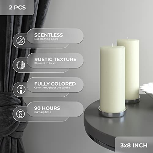 CANDWAX Set di 2 candele a pilastro, 3 x 8 inch, candele decorative rustiche, senza profumo, ideali come candele per matrimoni o grandi candele per interni domestici, candele avorio