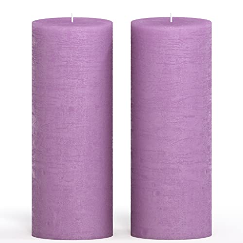 CANDWAX Set di 2 candele a pilastro, 3x8 inch, candele decorative rustiche, senza profumo, ideali come candele per matrimoni o grandi candele per interni domestici, candele lilla