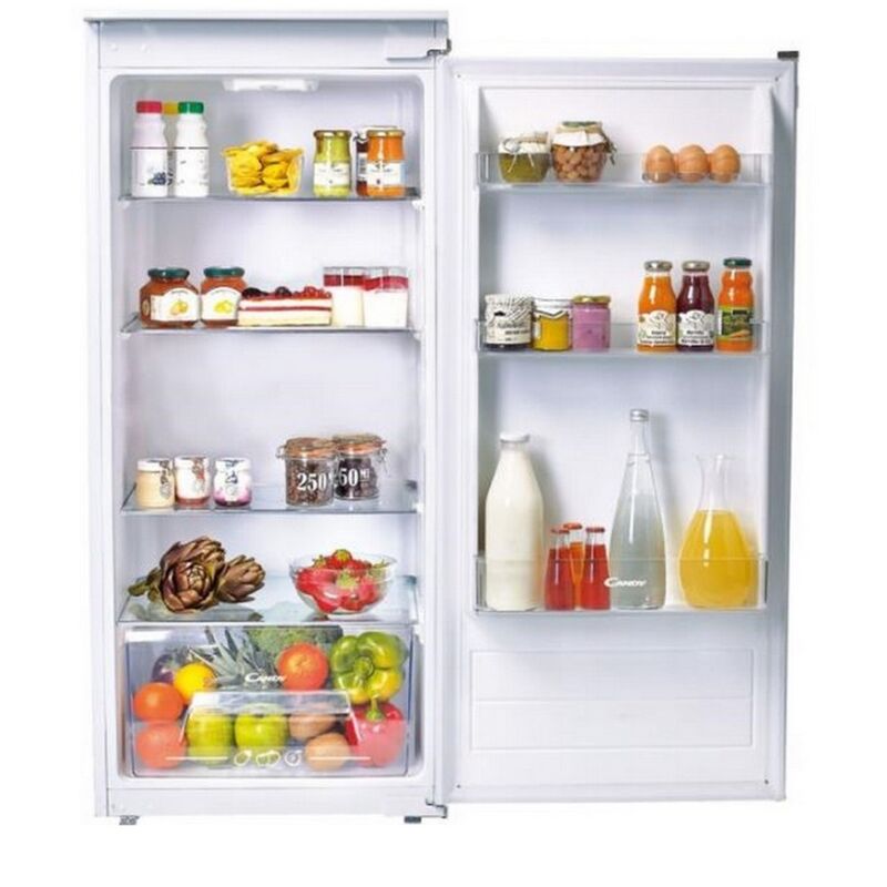 Frigorifero integrabile 1 porta Candy CFBL2150N / N Utile con fissaggio su porta scorrevole. Tipo di prodotto: Frigorifero integrato 1 porta. Volume netto (totale): 197 L. Tipo di freddo: statico. Volume netto (rif.): 197 L. Numero di compressori: 1. Numero di circuiti: 1. Regolazione: meccanica. Visualizzazione T °: no. Allarme: no. Porte reversibili: sì. Livello audio.: 39 dB .. Consumo elettrico: 125 kWh / anno. Classe climatica: ST. Etichetta energetica: F. Categoria del suono: C. Il + prodotto: illuminazione a LED SKY. Sbrinamento automatico. Ripiani in vetro. Contenitore per verdure. Illuminazione a LED Sky. Controllo interno meccanico. Tipo di fissaggio: cerniere. Altezza nicchia: 122,5 cm. Dimensioni complessive (LxAxP): 54 x 122 x 54 cm. Dimensioni della nicchia (LxAxP): 56 x 122,5 x 54 cm. Peso netto: 43,5 Kg.