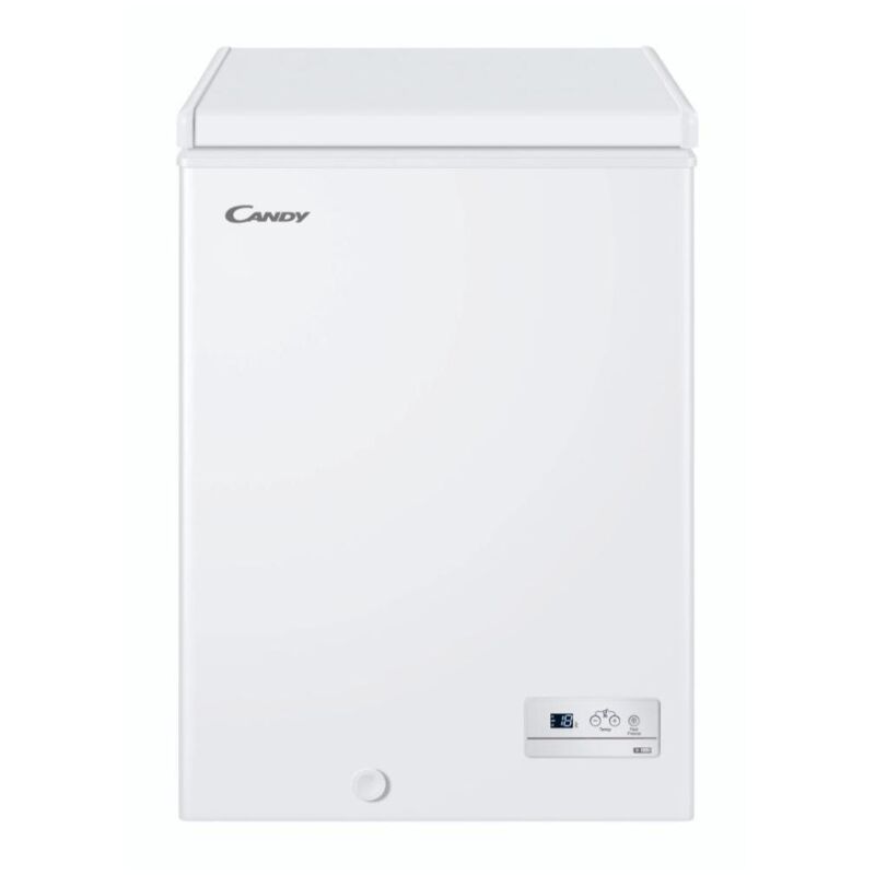 Risparmia denaro ed energia Conforme alla Nuova Etichetta Energetica, questo congelatore è in classe F. Paragonato ad un elettrodomestico in classe G riduce i consumi fino al 20%, permettendoti di risparmiare energia, denaro e rispettare l'ambiente. Artico La prima e unica gamma di congelatori orizzontali che trasforma un prodotto classico in un dispositivo intelligente. Grazie alla gestione migliore e intuitiva del cibo, puoi facilmente proteggere i tuoi alimenti, conservarli per un lungo periodo in totale sicurezza ed essere informato sulle date di scadenza, ovunque tu sia. Candy CHAE 1002F. Capacità netta congelatore: 97 L, Classe climatica: T, Capacità di congelamento: 9 kg/24h, Autonomia senza energia elettrica: 13 h, Emissione acustica: 39 dB, Punteggio: 4*. Cerniera porta: Sinistra. Classe efficienza energetica: F, Consumo energetico annuo: 194 kWh. Colore del prodotto: Bianco Design Tipo di prodotto Congelatore a pozzo Posizionamento dell'apparecchio Libera installazione