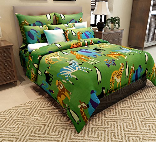 Home Candy 144 TC Regno animale bambini cotone matrimoniale lenzuolo con 2 federa - multicolore