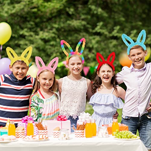 Simbolo di Pasqua. Adorabili cerchietto per orecchie di coniglio in peluche, confezione da 8 colori, blu, giallo, rosa, bianco, arancione, rosa, rosso e multicolore, perfetto come accessorio per feste con i tuoi amici da condividere a Pasqua.