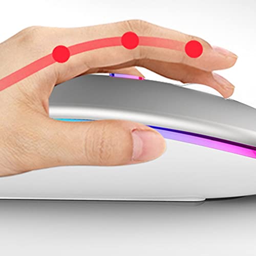 CandyT Ricarica+2.4G+Wireless+Illuminazione Mouse Wireless per Notebook Silenzioso Mouse Durevole Opaco Ultrasottile a Risparmio energetico (Ricarica Argento e Edizione Luminosa)