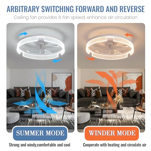 【Velocità del vento regolabile】Plafoniera con ventilatore da soffitto silenziosa può essere regolata su 6 livelli e la velocità del vento può essere facilmente modificata tramite telecomando per soddisfare le diverse esigenze. Le pale dei ventilatori da soffitto a LED possono ruotare in entrambe le direzioni per accelerare la circolazione dell'aria interna e mantenere l'aria nella stanza fresca e senza ostacoli. Combinazione di ventilatore da soffitto e plafoniera. Si può usare tutto l'anno.