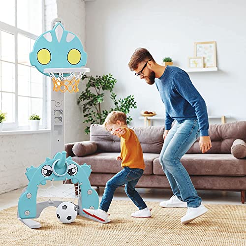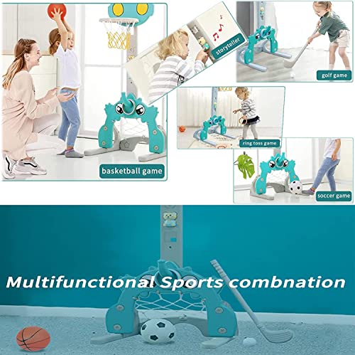 Canestro da basket per bambini, set da basket 4 in 1, con anello da pallacanestro, gioco da golf, supporto regolabile in altezza, per bambini dai 3 anni in su