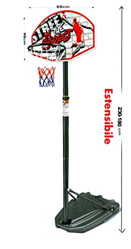 CANESTRO Basket con PIANTANA E TABELLONE Regolabile CM 180 - 230 Pallacanestro