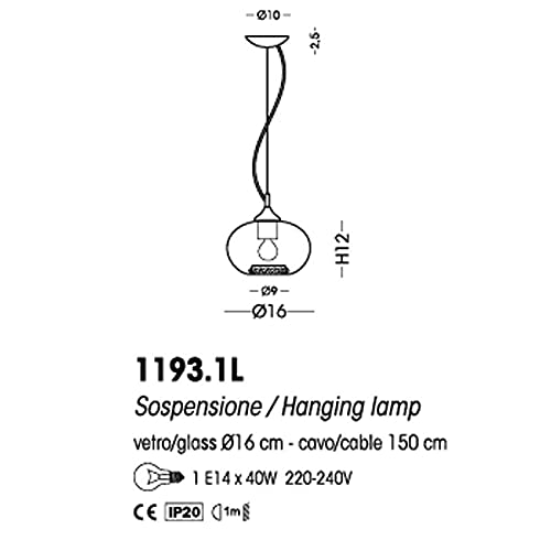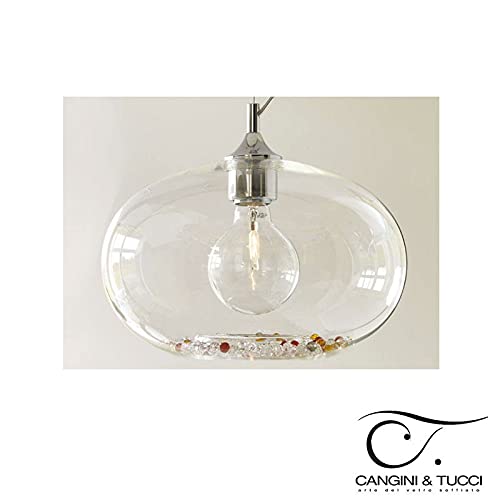 Cangini & Tucci, Sospensione Lampada Soffitto in Vetro Soffiato e Strass, mod. Ginevra diam.30mm