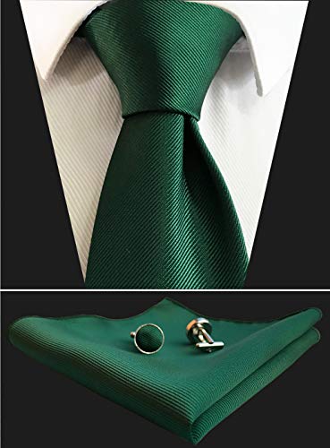 CANGRON Set di cravatte tinta unita Strisce Diagonali Verde Scuro da uomo con fazzoletto da taschino, gemelli, confezione regalo DLSCTSL