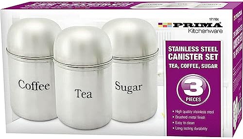3PC CANISTERS COFFEE SUGAR TEA STAINLESS STEEL STORAGE JARS POT KITCHEN SET NEW by Prima