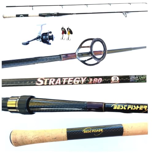 Kit canna + mulinello + 2 cucchiaini da pesca spinning trota lago torrente cavedano