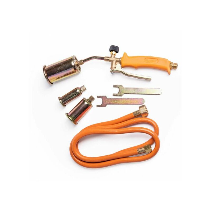 Bruciatore a gas tubo manico ergonomico asfalto copertura 360mm larghezza Descrizione del prodotto: Bruciatore a gas adatto per lavori di copertura e asfalto. Dispone di una valvola per la regolazione del flusso del gas con una lunghezza totale di 360mm. Caratteristiche tecniche: Lunghezza 360 mm Prolunghe con diametro 25, 35 e 50 mm Tubo flessibile 1.5 m