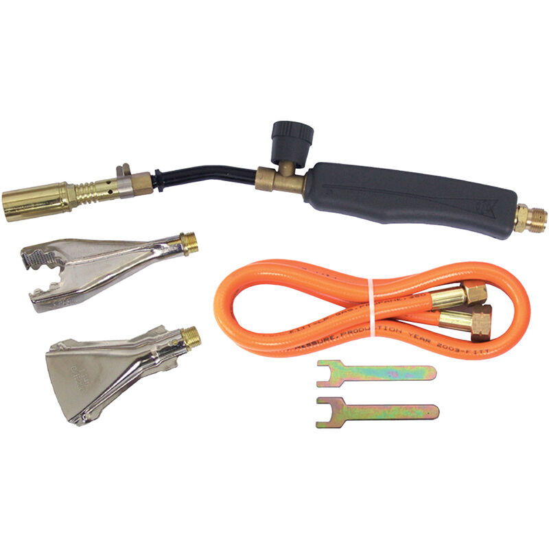 Kit per saldobrasatura e saldatura a butano e gas liquido con tubo un gomma flessibile da 150 cm in dotazione. Completo di bruciatore a fiamma concentrata, bruciatore per brasature e bruciatore a fiamma piatta per rimuovere vernici. In dotazione, anche 2 chiavini per regolare l'attacco del tubo in gomma. Contenuto della confezione: 1x Bruciatore Fiamma Concentrata 17 mm 1x Bruciatore per Brasature 22 mm 1x Bruciatore Fiamma Piatta 40 mm 1x Tubo Flessibile 1,5 mt 2x Chiavini di regolazione