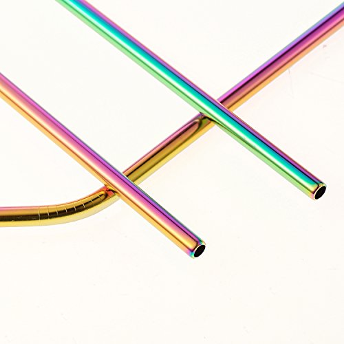 Set di 6 cannucce in acciaio INOX, approvato FDA, ultra lunghe da 26,9 cm, cannucce per bevande adatte a bicchieri tipo tumbler/rumbler da 570 - 850 ml (3 dritte + 3 curve + 2 spazzole) Rainbow,4pcs Straight&bend,10.6"