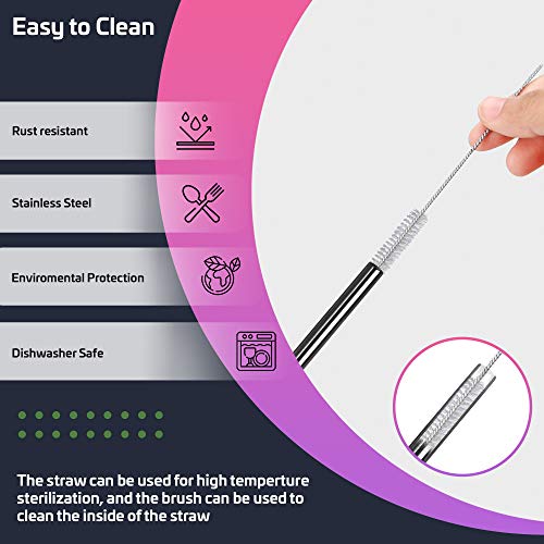 FACILE DA PULIRE Le cannucce riutilizzabili sono facili da pulire con la spazzola per la pulizia. La spazzola ha manico in acciaio inossidabile e setole in nylon ed è della misura perfetta per queste cannucce. Adatto anche per la pulizia di bicchieri e bottiglie.