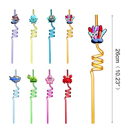 【Decorazioni per feste】: Ogni cannuccia riccia è dotata di una simpatica decorazione di animali marini che può essere spostata sulla cannuccia per rendere la bevanda nella tazza più deliziosa e attraente. Cannucce di diversi colori possono essere abbinate a tazze di diversi colori per rendere la tua festa più interessante.