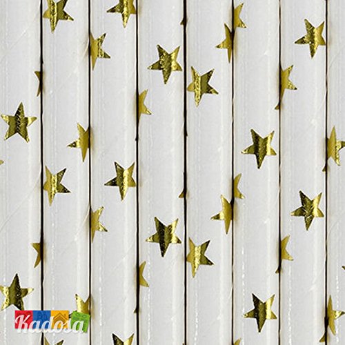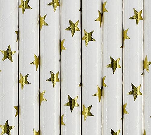 Set 10 Cannucce di Carta Bianche con Stelle Oro ad Effetto Metallico da 19,5 cm di Lunghezza ideali per Matrimonio Eventi, Feste di Compleanno Natale