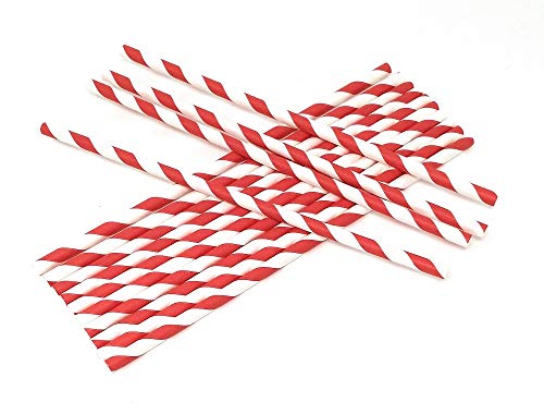 Cannucce di carta biodegradabili a righe rosse e bianche, confezione da 250