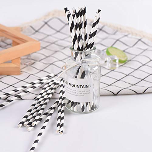 Cannucce di carta a righe di colore nero, perfette per cocktail, succhi di frutta, etichettatura degli ingredienti, barattoli e decorazioni.