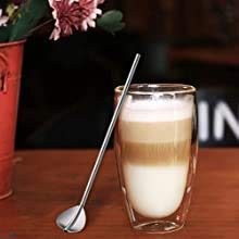 ✅Durevole: acciaio inossidabile, resistente, non tossico, sicuro da usare. Le cannucce durevoli in acciaio inossidabile migliorano la tenuta. Un set da 10 pezzi, inclusi 8 cucchiai da latte macchiato in argento e 2 spazzole per la pulizia.