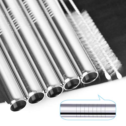 Cannucce per frullati: la nostra confezione include 5 cannucce extra larghe in acciaio inossidabile, le cannucce in metallo sono 21,6 cm con il loro diametro di 12 mm e 2 spazzole per la pulizia della cannuccia. Queste cannucce sono perfette per le cannucce. Ottimo utilizzo per bolle e tè Boba, Mille. kshakes o qualsiasi altre bevande liquide.