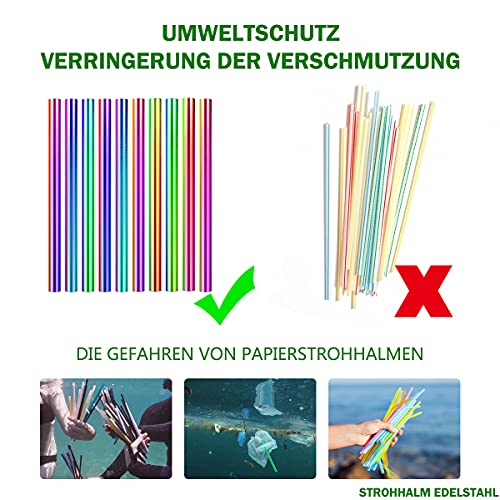 Rispettoso dell'ambiente e riutilizzabile: resistente al freddo e al calore, non arrugginisce né si rompe e può essere utilizzato ripetutamente. Dovremmo usare questa cannuccia riutilizzabile in acciaio inossidabile invece delle cannucce di plastica usa e getta per proteggere l'ambiente e ridurre l'inquinamento bianco.
