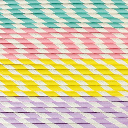 verdi, rosa, giallo e viola con strisce di carta cannucce
