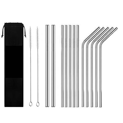 10 cannucce riutilizzabili, cannuccia riutilizzabile in acciaio inossidabile da 215 mm (4 x 6 mm dritte + 4 x 6 mm piegate + 2 x 12 mm dritte + 2 spazzole per la pulizia)