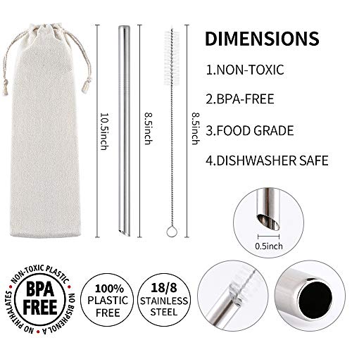 Design per tè BOBA, liscivi e bevande JUMBO - 6 cannucce extra larghe in metallo + 6 punte in silicone + 2 spazzole per la pulizia + 1 custodia per cannucce Le nostre cannucce da tè larghe 12 mm ti aiuteranno a succhiare anche le ultime perle di tapioca, condimenti o gelatine. Le cannucce extra larghe in acciaio satinato sono la migliore dimensione ideale per tè di boba grasso (perle di tapioca), frullati congelati, frullati spessi, gelatine, bevande jumbo e altre bevande spesse fatte in casa.