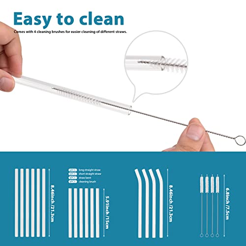 Cannucce di vetro riutilizzabili Annvchi 20 pezzi - 6 corte + 6 lunghe dritte + 4 cannucce di vetro curve + 4 spazzole per la pulizia di Bubble Tea, frullati, cocktail, succhi