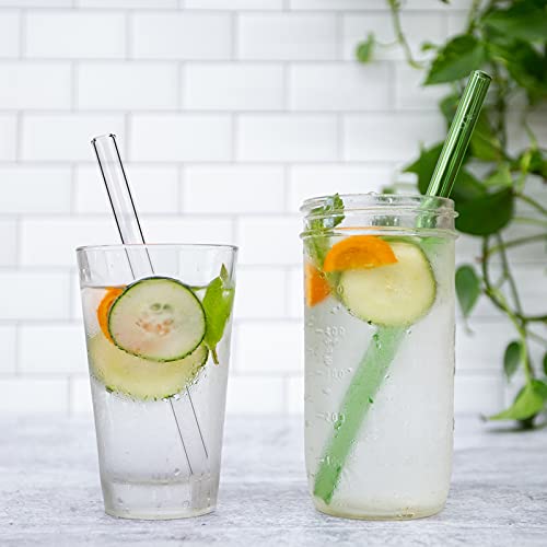 【8 cannucce in vetro sano】 Il nostro prodotto è composto da 8 cannucce di vetro e 2 pennelli ha un assoluto vantaggio di quantità. Le nostre cannucce di vetro riutilizzabili contengono 4 cannucce da 21,5 cm trasparenti e dritte e 4 cannucce colorate da 21,5 cm. 2 spazzole per la pulizia da 21,5 cm possono pulire accuratamente tutta la paglia. Ideale per bere acqua, Bubble Tea, cocktail, limonata, caffè, tè freddo, cappuccino, ecc