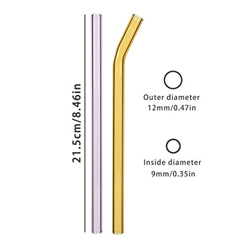 Cannucce di vetro riutilizzabili per bubble tea, 8 pezzi cannucce di vetro colorate con 2 spazzole, 12mm di larghezza, lavabili in lavastoviglie