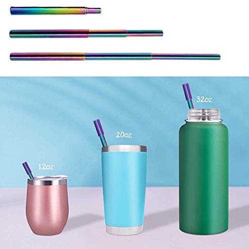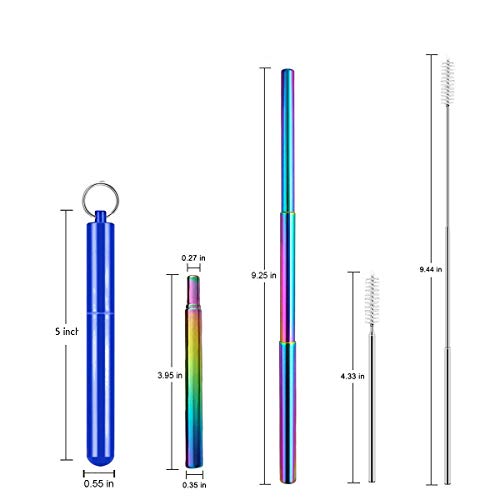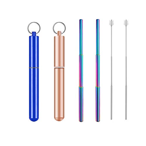 Cannuccia pieghevole pieghevole riutilizzabile in acciaio inox cannuccia portatile telescopica con custodia in alluminio (blu+nero)