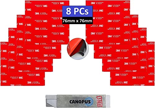 CANOPUS Tamponi Adesivi 3M Quadrati 3M VHB 5952 (76mm - 8PZ), Impermeabile Nastro Biadesivo Extra Forte Biadesivo Tampone, Nastro di Fissaggio di Targhe per Auto, interno ed esterno