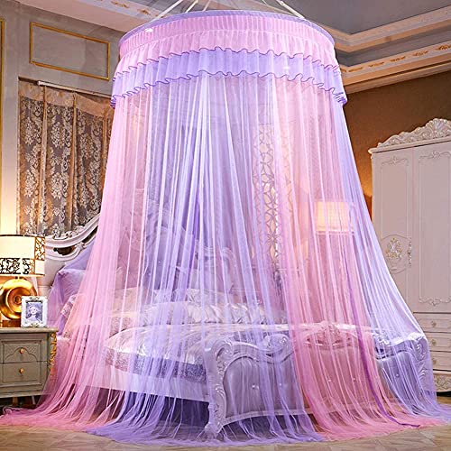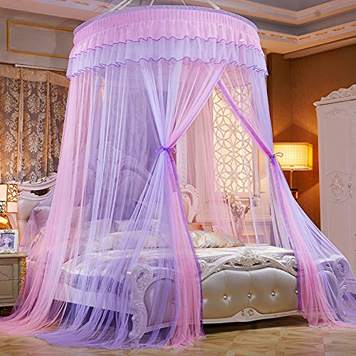 Bed Canopy Bed Tent Lace Sheer Mesh Princess Dome Mosquito Net Decoration Hanging Bed Curtains for Double Bed Purple